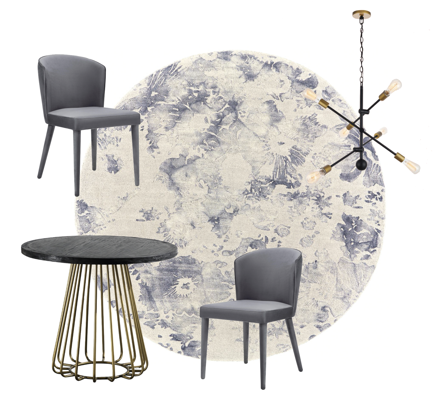Esta comedor esta inspirado con un tapete Lorrain en redondo, con tonos azules y cremas.