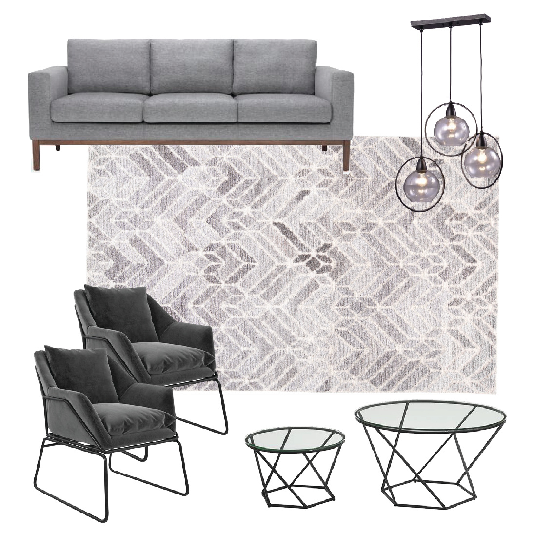 En esta sala acomodamos nuestro tapete ASHER gray natural , con muebles en tonos grises y detalles negros. La idea fue crear un modelo limpio en colores grises que den sensación de un espacio conservador y serio pero al mismo tiempo sofisticado.
