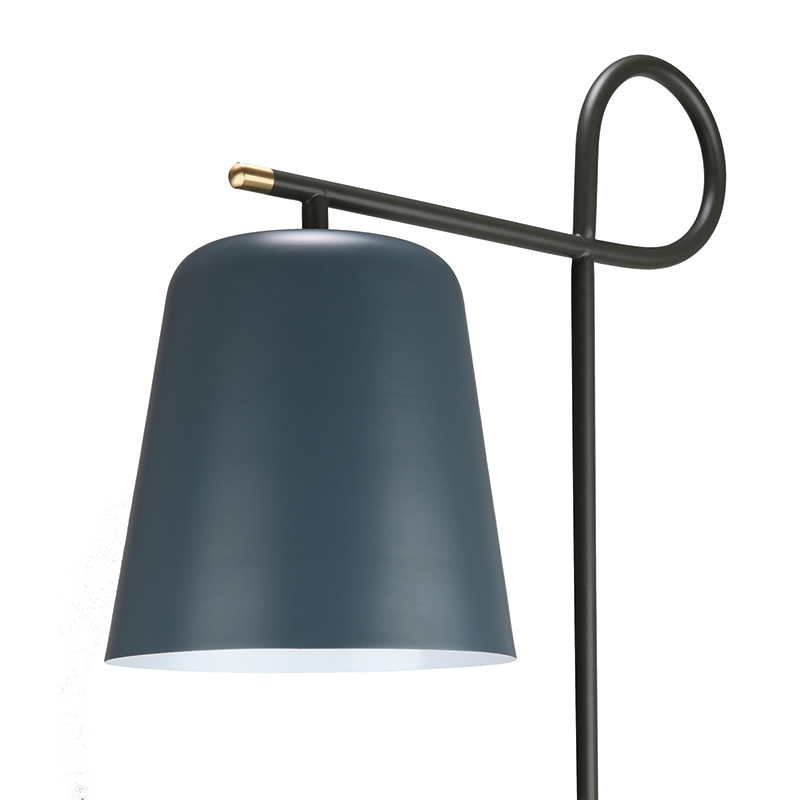 Llena de atractivo moderno, esta lámpara de pie hace alarde de un tono cónico gris bellamente compensado por su cuello curvo y base de mármol blanco.