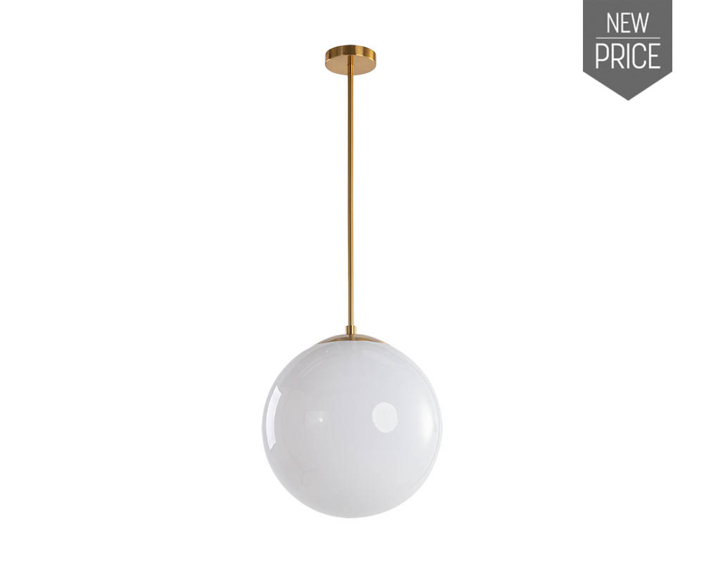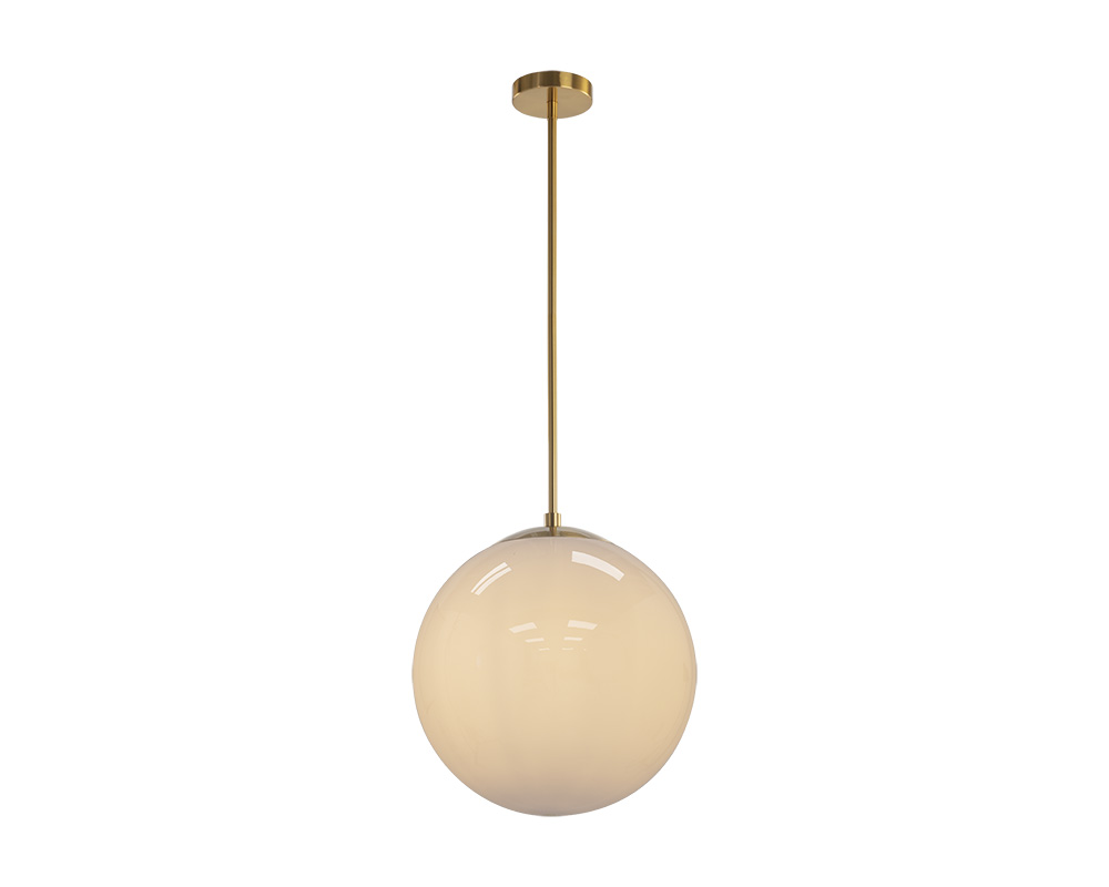 Ilumina un espacio moderno y romántico con esta lámpara colgante. Cuenta con un globo de acrílico blanco empañado con una base de latón. Instale en múltiplos para un efecto dramático.