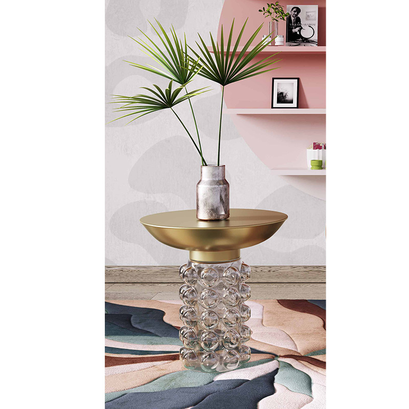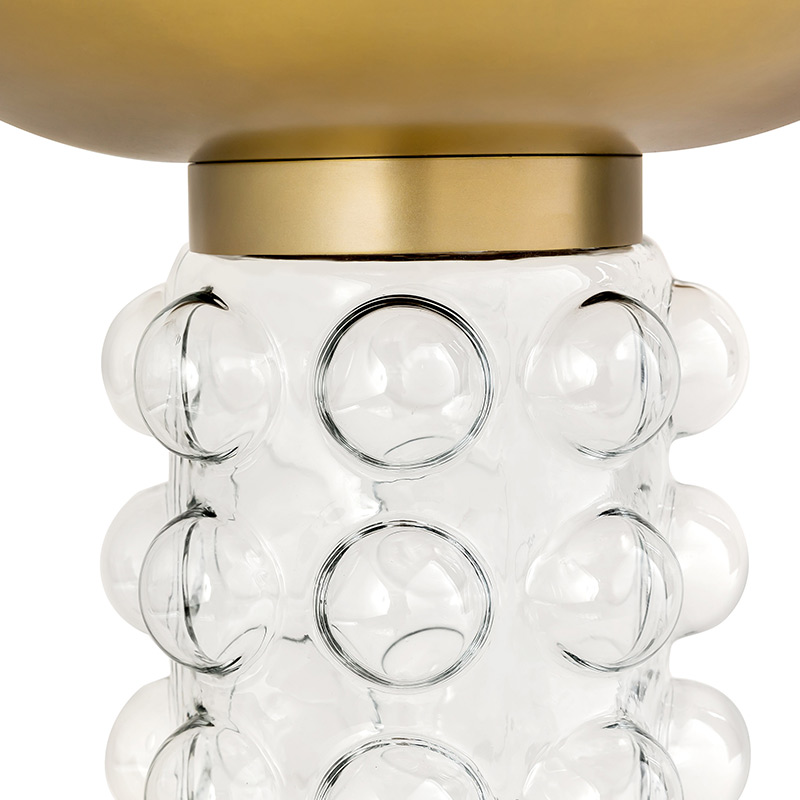 La base de vidrio transparente presenta un diseño de burbuja