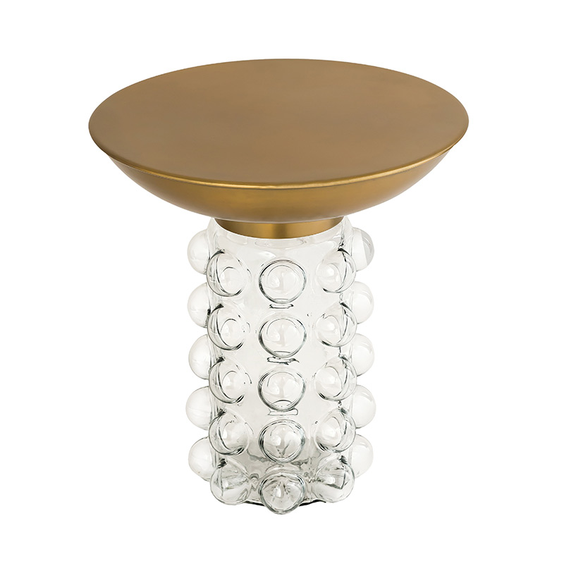 Una combinación lúdica y elegante de diseño y materiales, la mesa auxiliar Bubble presenta una parte superior de latón apoyada en una base de vidrio transparente. Úselo individualmente o en parejas para complementar y mejorar su espacio vital.