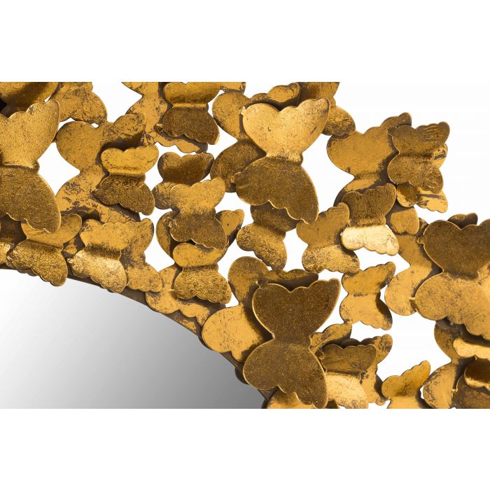 Enmarcado por mariposas revoloteando, este espejo hecho a mano ofrece un diseño y una decoración divertidos para su espacio. Cada mariposa está martillada a mano y diseñada y se une para crear una pieza verdaderamente única.