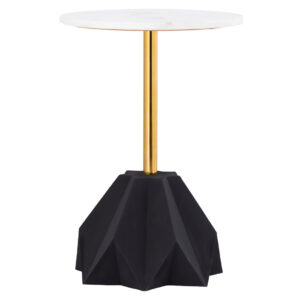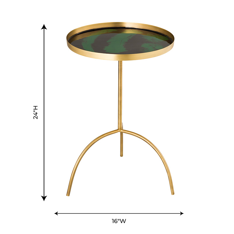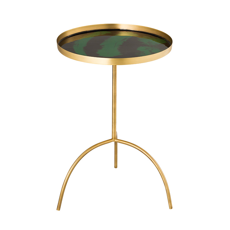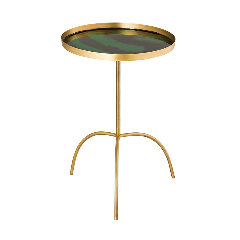Esta mesa decorativa, elaborada en hierro con acabado dorado y con una tapa de esmalte única, se ofrece en dos opciones de color para combinar con tu estilo fabuloso.