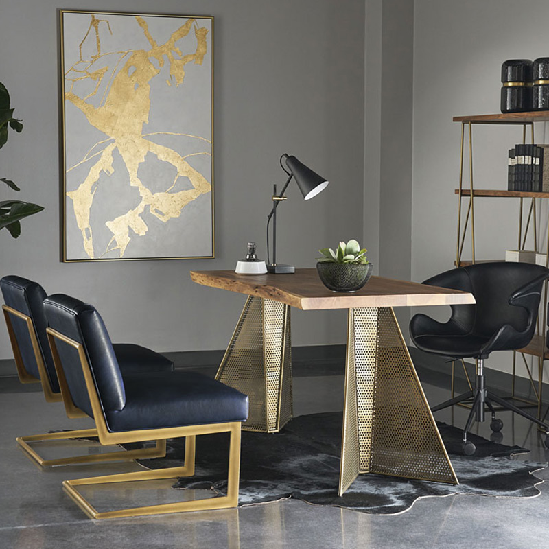Esta pintura dramática con trazos audaces y texturizados de pintura dorada crea un movimiento visual impresionante. Cuenta con un marco flotante con acabado dorado.
