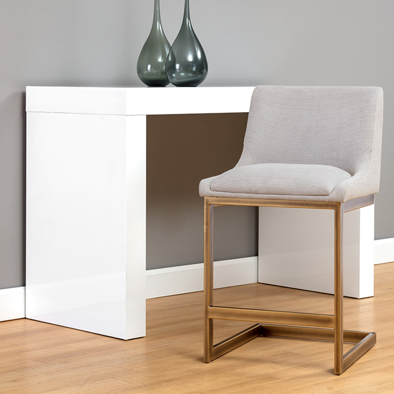 Este taburete de nuestra colección Irongate presenta un diseño clásico en voladizo para darle un toque de elegancia. Hecho a mano con una tela de color gris cenit gris y tela gris suave cenital con un marco rústico de acero de bronce. Adecuado para varios espacios de comedor, cocina y bar de todos los tamaños.