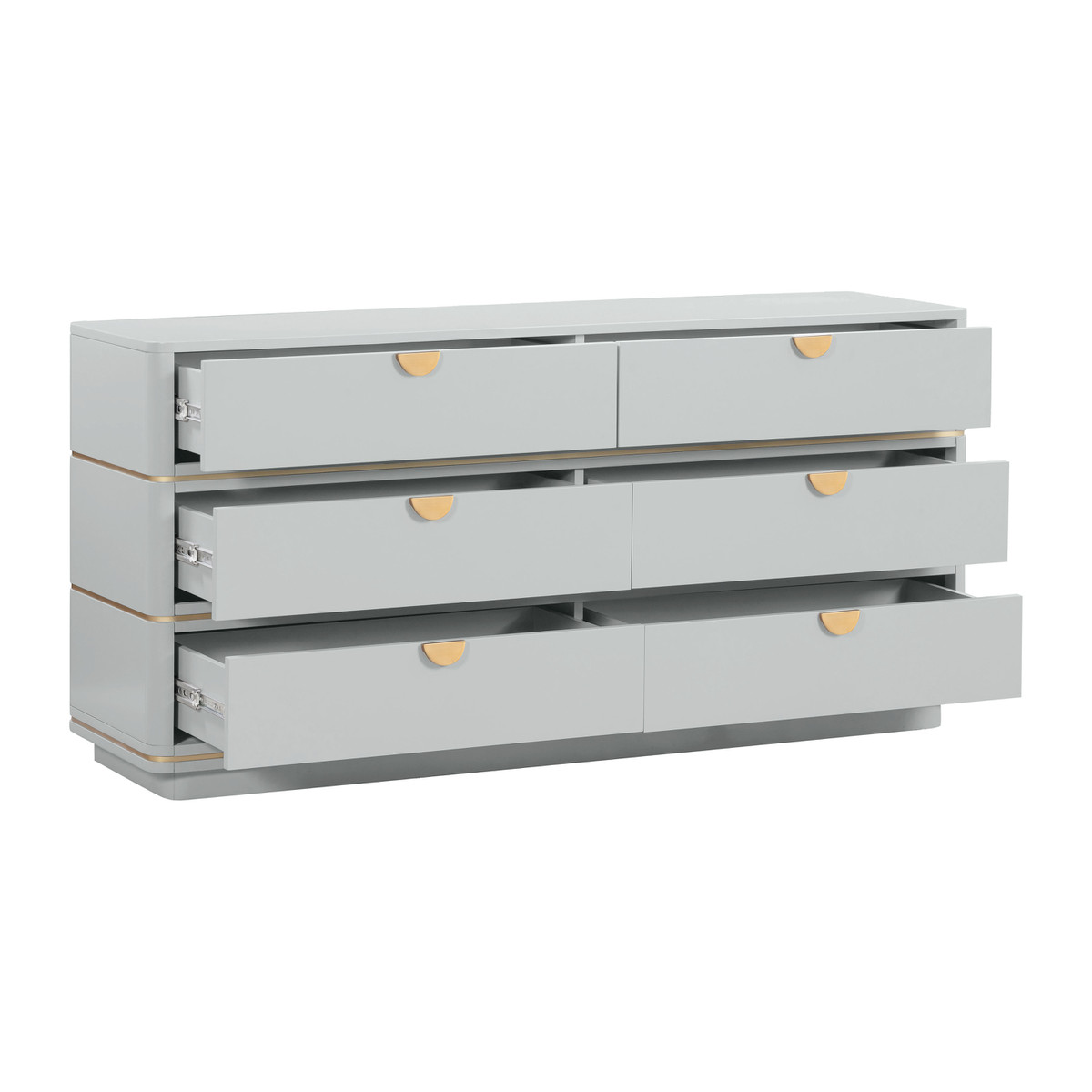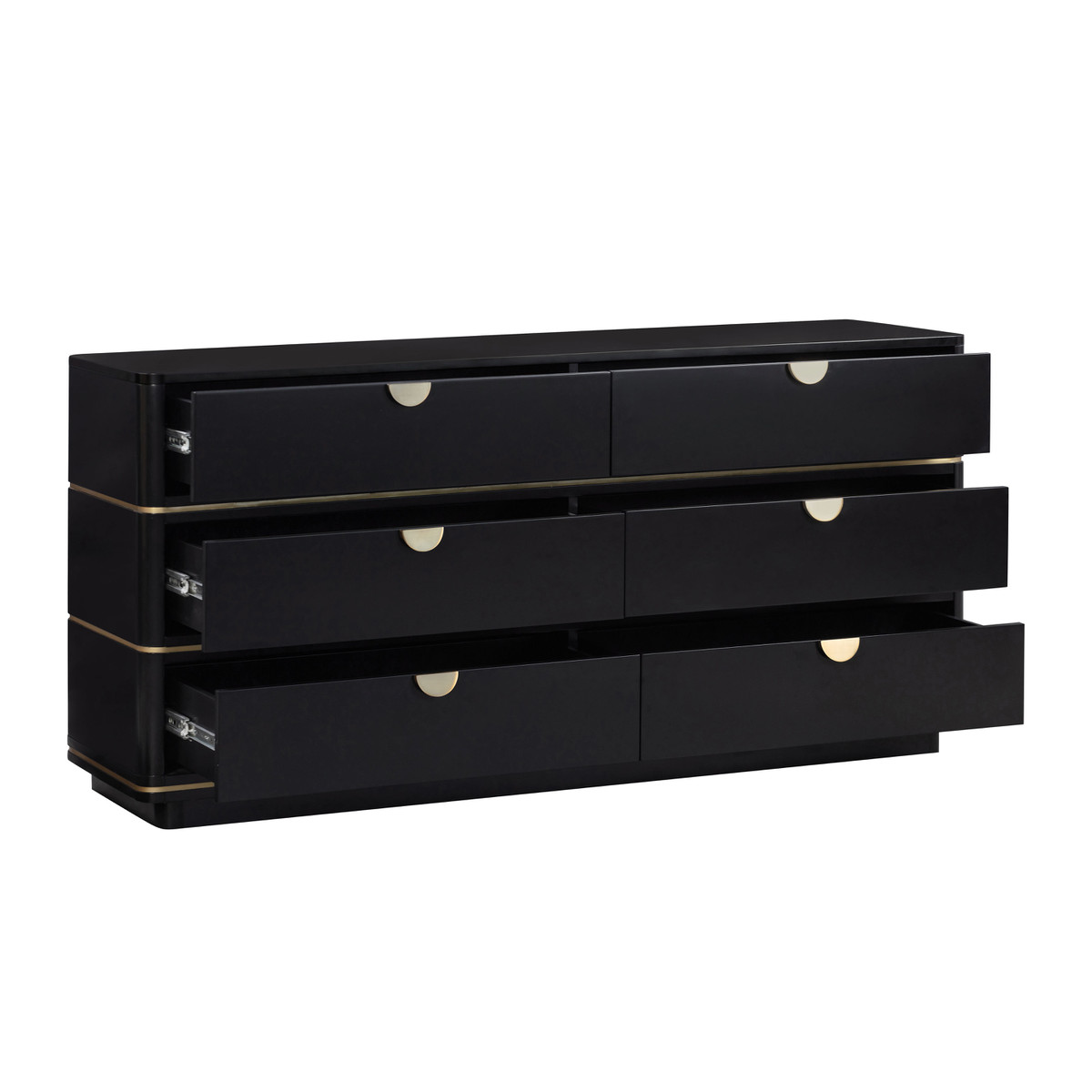 La cómoda de 6 cajones Julieta es una obra maestra del Art Déco. Los espaciosos cajones con cierre suave ofrecen mucho espacio de almacenamiento y el material de madera de acacia garantiza una gran estabilidad. Disponible en tres opciones de colores clásicos, acentuada con tiradores de latón y delicadas incrustaciones, Julieta agregará sin esfuerzo dramatismo y sofisticación a cualquier espacio.