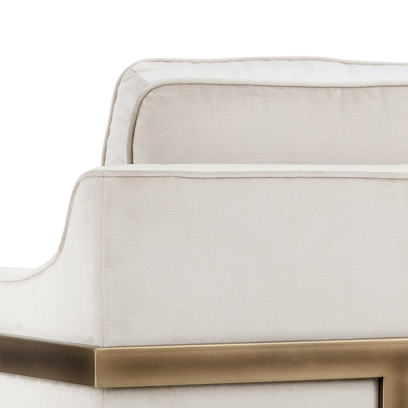 Las conversaciones fluirán mientras está sentado en este hermoso sillón de nuestra colección Irongate. Diseñado con asientos profundos, respaldo acolchado y detalles de ribete para una adición cómoda a los espacios de transición. Disponible en nuestra suave tela de guijarros de piccolo y prosecco con un marco de acero de bronce rústico expuesto.