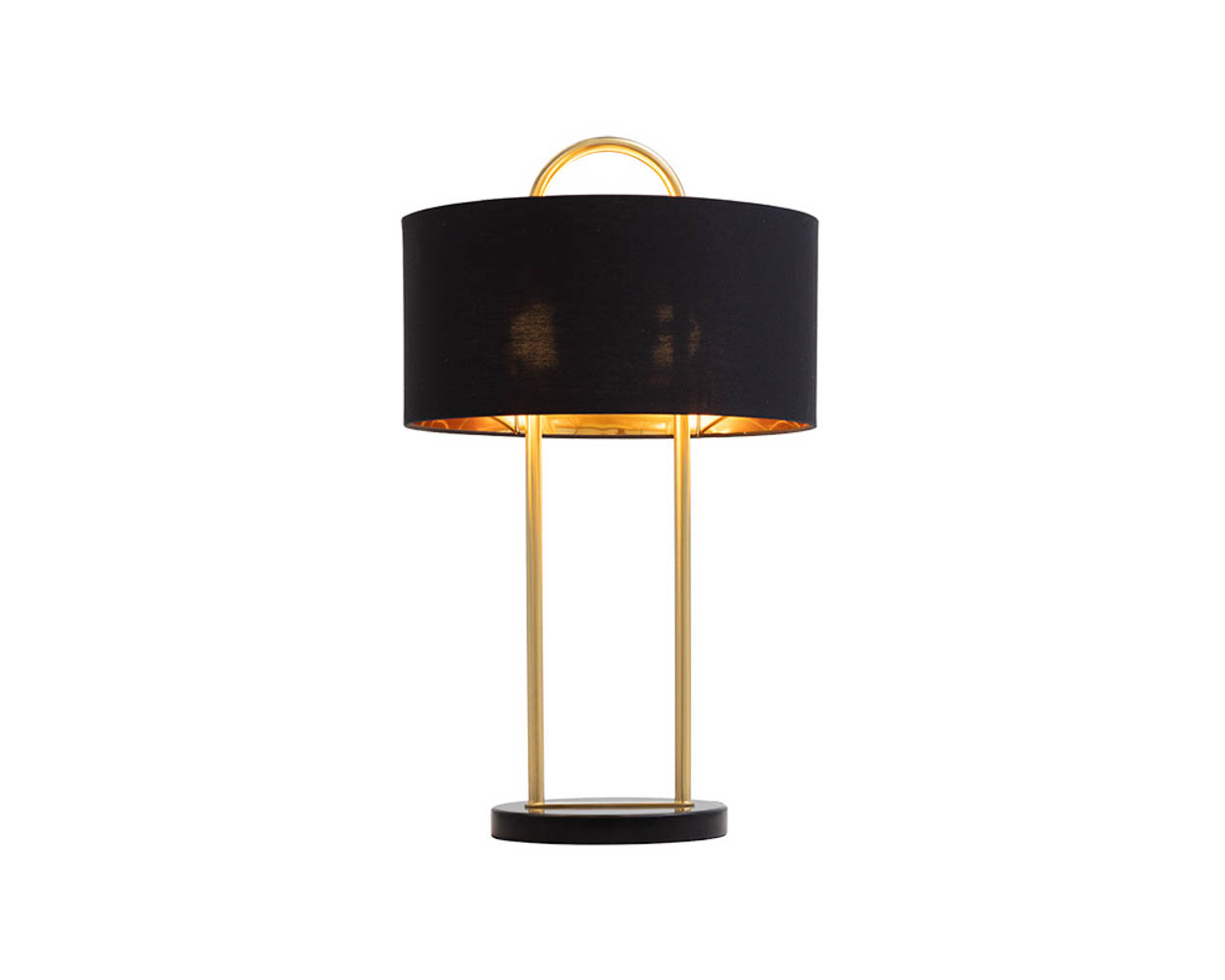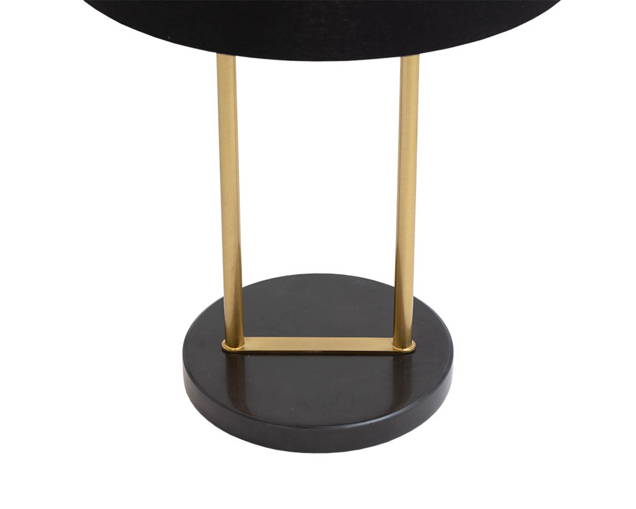 Ilumina cualquier espacio con esta lámpara de mesa que destila un estilo moderno. Cuenta con una pantalla de lámpara de tela negra mate y herrajes de hierro de latón. Completado con una base de mármol negro. También disponible en tela blanca mate con base de mármol blanco. Como el mármol es un material natural, las vetas únicas, las picaduras, las fisuras, las microfisuras y las variaciones de color son características que se suman a la singularidad y belleza de cada pieza.