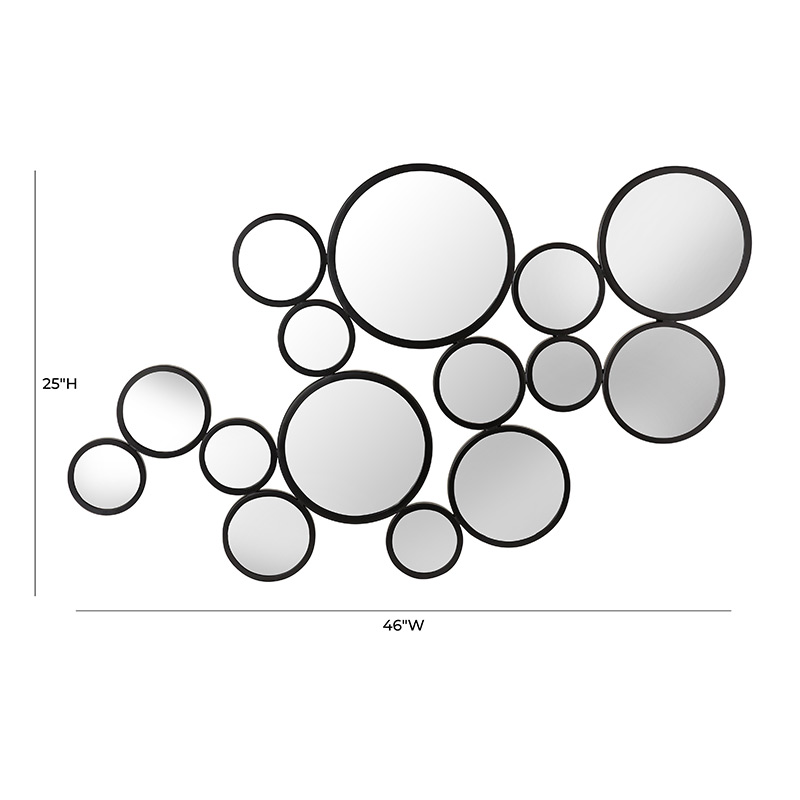 Quince espejos redondos de varios tamaños se combinan para crear una adición dramática a su espacio. Nos encanta su sensación contemporánea pero glamorosa.